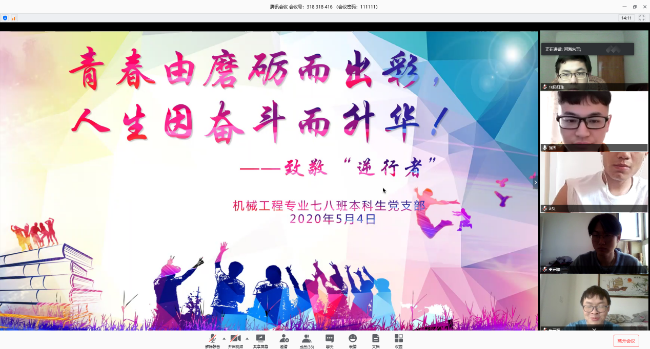 5月4日,Bwin必赢网站入口机械工程专业七八班本科生党支部举办以“青春由磨砺而出彩,人生因奋斗而升华”为主题的线上人物专访,邀请到了江苏“最美医务工作者”——常州市第二人民医院第一批援鄂医疗队副队长杨乐医生为支部党员分享他的战“疫”故事,带领支部同志感受医务工作者的“刚”与“柔”。