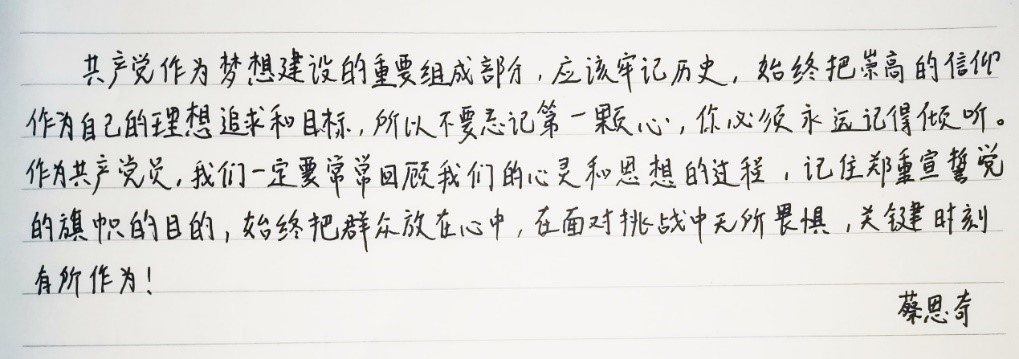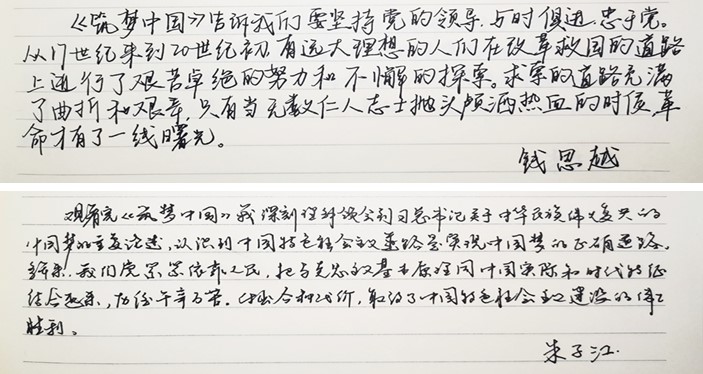党员们也认真写下了《筑梦中国》纪录片的观后感和心得体悟,大家深深体会到自党和新中国成立以来,经历的许多困苦和磨难。正是因为先辈先烈们坚定的理想信仰,以血肉之躯抵抗外敌的入侵,才换来祖国的今天。