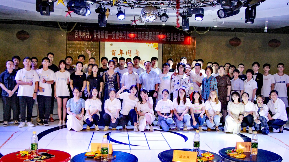 6月18日,必赢国际bwin举办“百年同舟,青春砥砺”党史学习教育支部风采展示暨欢送毕业生晚会活动。校党史学习教育第八巡回指导组组长潘洪林、学院领导、宿管阿姨、各学生党支部以及2021届全体毕业生参加了本次活动。