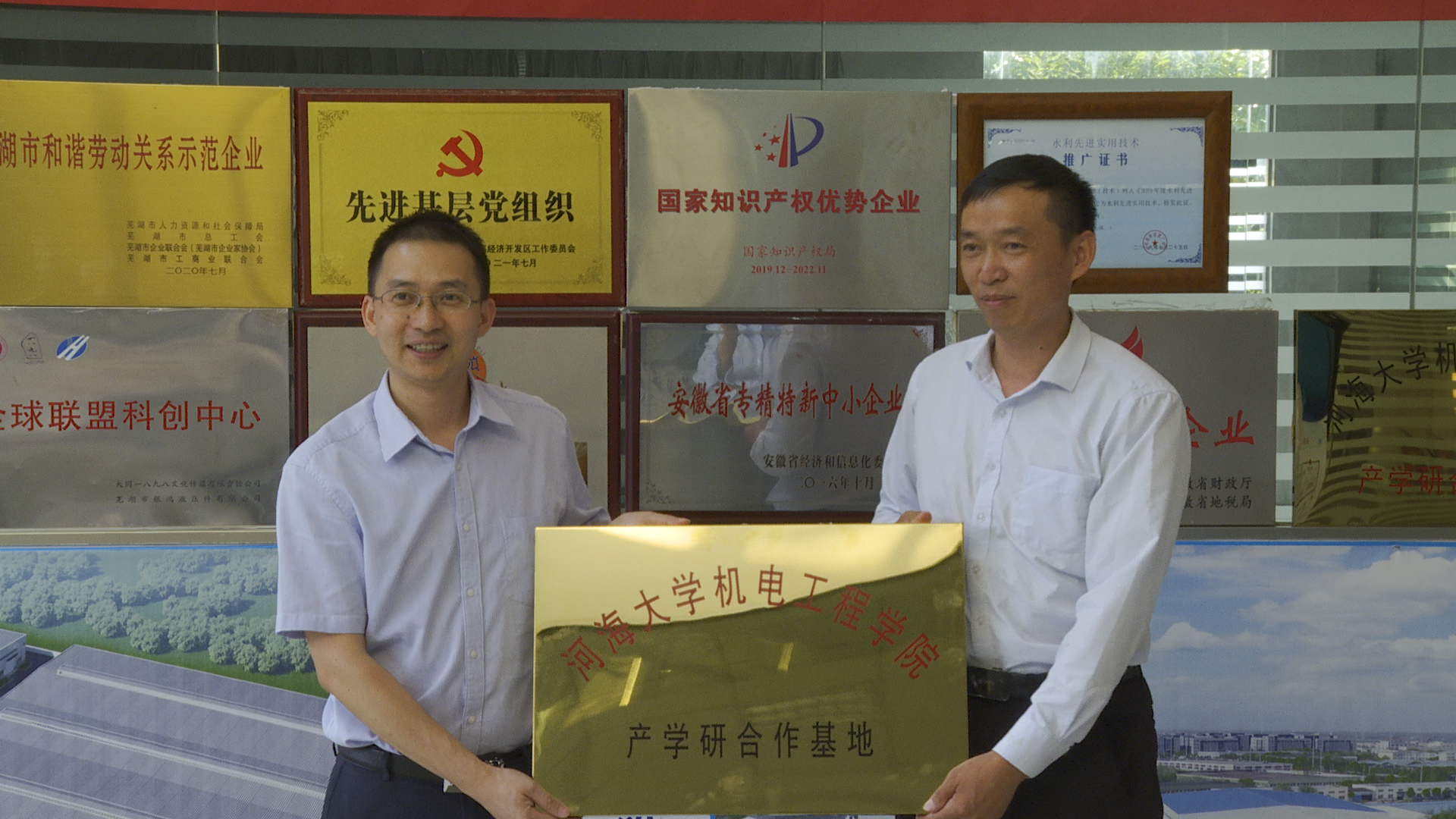 座谈会后,双方举行了必赢国际bwin与芜湖市银鸿液压件有限公司产学研合作基地揭牌仪式;在陶庭鸿总经理带领下,丁院长一行参观了芜湖市银鸿液压件有限公司生产车间、新建生产基地。