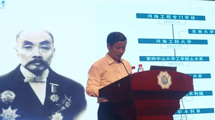 随后,刘书记介绍了河海校史和常州三杰的光辉事迹,并详细解释了“艰苦朴素,实事求是,严格要求,勇于探索”的十六字校训的内涵,还勉励在座的456位新同学,秉承着河海人的奉献精神,以博大的胸襟、高尚的品质,执着追求理想目标,一起创造属于河海人的奇迹与辉煌。