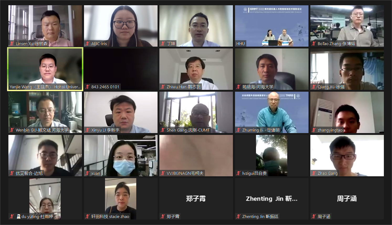 来自中国、美国、英国、意大利等近300位专家学者参加了本次线上会议。吉林大学韩志武教授、美国普渡大学Bi Zhuming教授、中国矿业大学沈刚教授、南京航空航天大学唐敦兵教授、Bwin必赢网站入口徐林森教授、上海交通大学王贺升教授、清华大学田煜教授、意大利卡拉布里亚大学Prof. Giuseppe Carbone、华中科技大学李新宇教授、英国普利茅斯大学Dr. Hooman Samani, 英国帝国理工学院Dr. Majid Taghavi, 英国阿伯丁大学Dr. Maria Elena Giannaccini、同济大学徐立云教授、清华大学聂振国教授、苏州大学张庭教授、东华大学汪俊亮副教授、中科深谷集团蒋荣慰副总裁等知名专家学者针对机器人与智能制造领域热点问题进行了异彩纷呈的学术报告。
